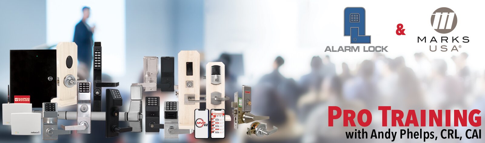 Alarm Lock & Marks USA have teamed up to give you the best in access control & door control solutions - Now, get training for you and your staff on using the latest new technology, installation & programming techniques, growth in new markets and even earn factory-certification on Alarm Lock and Marks USA products. Alarm Lock classes cover class-leading Trilogy Standalone Locks, Wireless Networked Networx Locks, Gateways and PIN/Prox-Automated Exit Trim; while Marks classes include Hi-Security Keys, Cylinders & Key Administration, Healthcare Locking Applications, School LocDown Security and 'Ins and Outs' of Exit Door Hardware.